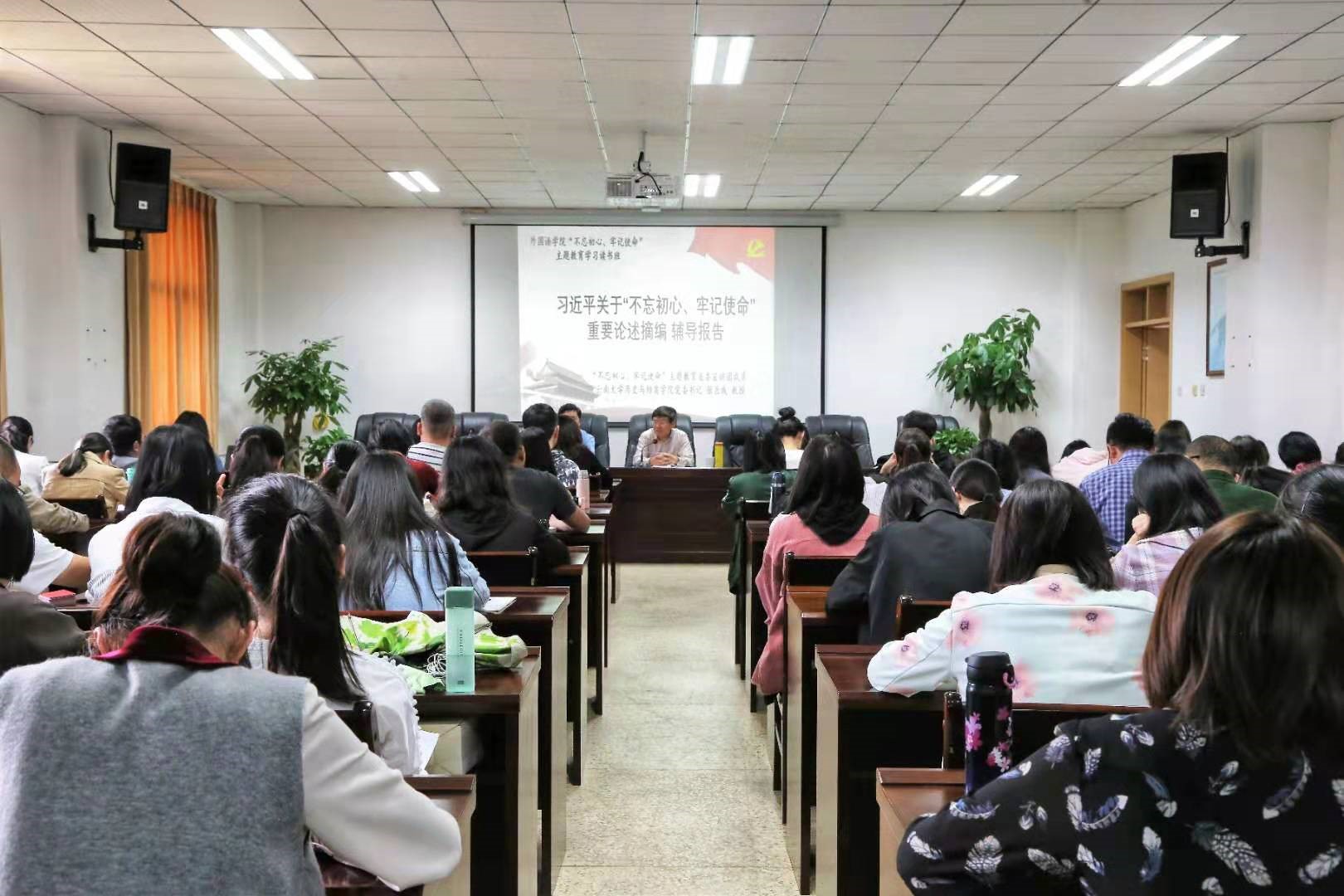 此次辅导由“不忘初心、牢记使命”主题教育省委宣讲团成员、云南大学历史与档案学院党委书记张巨成教授主讲,外国语学院全体教工党员及在校学生党员参加。