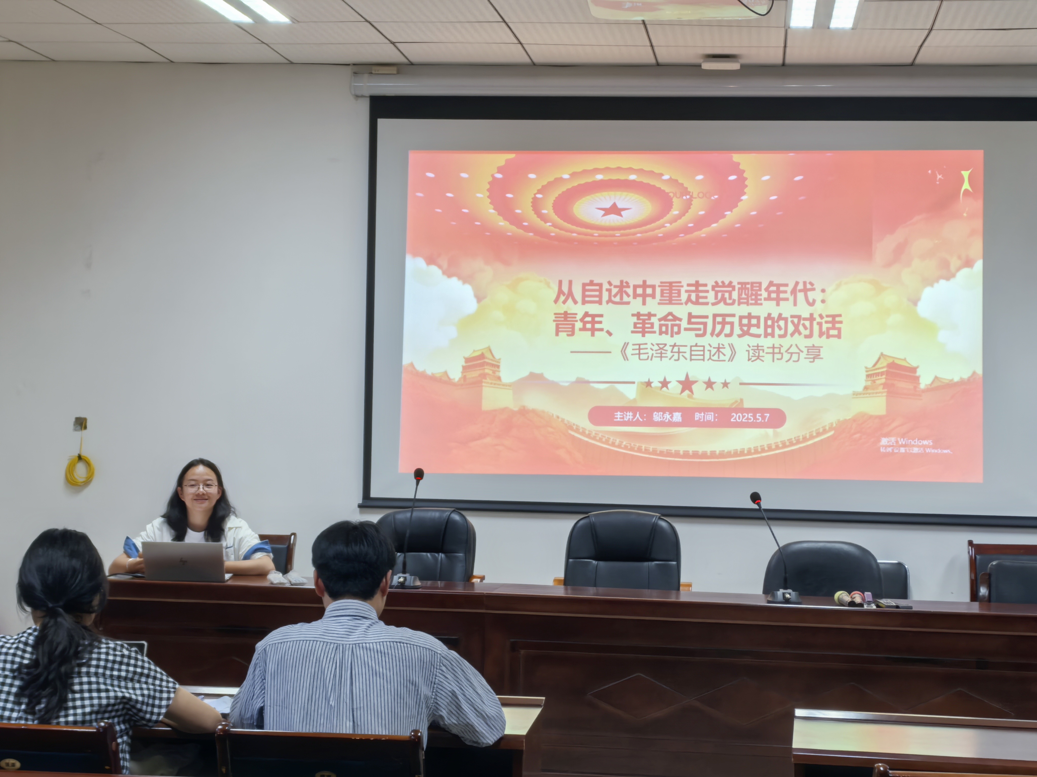 活动伊始,主持人简要介绍了《毛泽东自述》的创作背景与核心价值。该书以第一视角展现了毛泽东同志从青年求学到投身革命的成长轨迹,生动诠释了其马克思主义信仰的形成过程及对中国革命与建设的深远思考。同学们通过背景学习,对书籍的历史意义和现实启示有了初步认识。