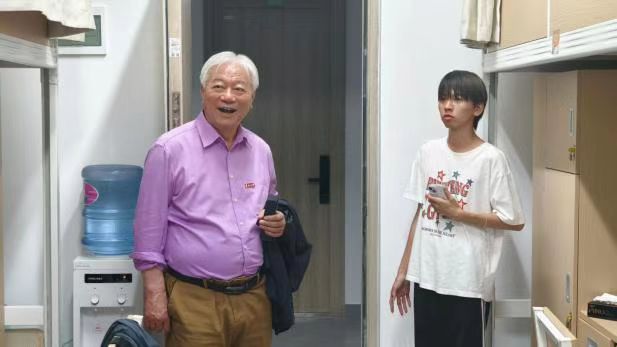 2025年9月5日晚,新生家长见面会结束后,外国语学院2025级本科生及研究生新生基本报到完毕,外国语学院党委书记唐国锋老师、院长刘树森老师、党委副书记何淼淼老师、副院长骆洪老师、谢萍老师、王浩老师、臧运发老师。分别前往梓苑新生宿舍,走访2025级新生,为新生送上初入外院的问候与关怀。