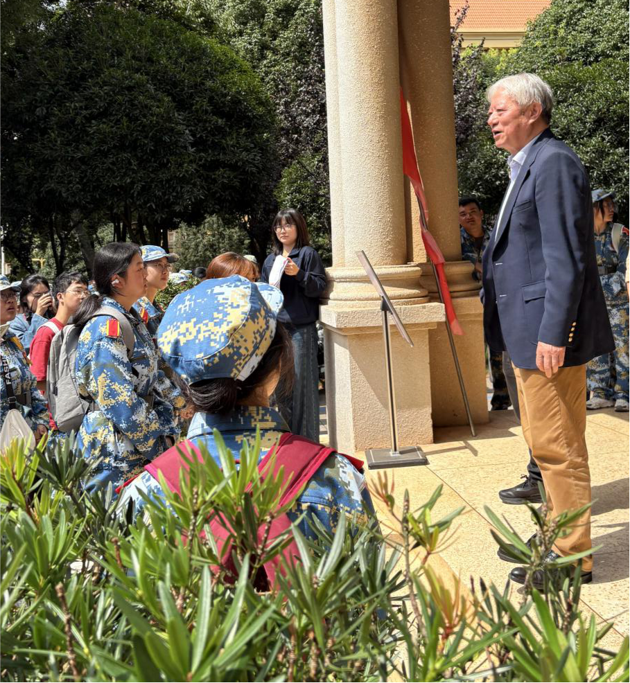 9月22日,外国语学院党委书记唐国锋、院长刘树森、党委副书记何淼淼及各系教师、辅导员安妮慰问正在参加军训的2025级外院学子,为他们送上学院的关怀与鼓励。
